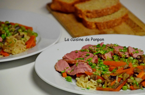 J'avoue que j'adore cuisiner dans un wok pour les légumes qui restent toujours un peu croquants, pour la facilité et la rapidité! J'ai accompagné mes nouilles et légumes d'un filet de canard cuit à basse température, une cuisson idéale pour garder toute la saveur et la tendreté d'une viande (et aussi d'un poisson!).