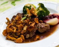 Vous pouvez également accompagner votre viande avec de la purée de céleri, des marrons, des bouquets de brocolis, des pommes fruits et une cuillère de confitures d'airelles pour une agréable saveur sucrée salée.