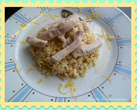 Dès que la viande est cuite, servir de suite avec du blé chaud ou du riz, selon vos envies et parsemer du zeste.