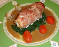 - 1Couper des tronçons de lotte de taille identique selon le nombre de personne. Assaisonner avec le poivre. Enrouler les tronçons avec les fines tranches de poitrine fumée.
