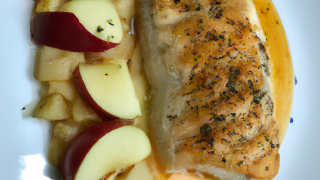 Dans les assiettes, déposez les quartiers de pommes et les filets de merlan.
