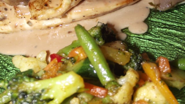 Du bon poulet avec de succulents légumes, le tout avec une sauce aux 2 poivres.