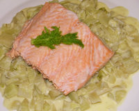 Salez et poivrez. Servez les filets de saumon sur les fenouils.