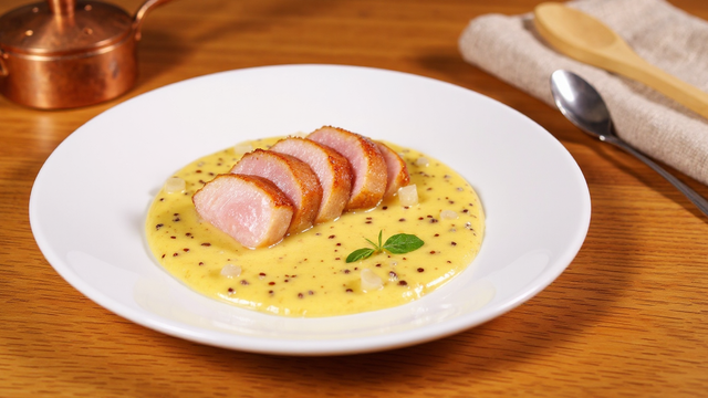 Le filet mignon de porc à la moutarde est apprécié pour son moelleux et sa sauce nappante. La moutarde apporte une note relevée qui s'équilibre avec la douceur de la crème fraîche et l'acidité du vin blanc. La sauce se lie directement avec les sucs de la viande dans la sauteuse après avoir fait dorer les morceaux. On l'accompagne de tagliatelles fraîches ou de riz pour profiter de chaque cuillère de crème. C'est une préparation gourmande idéale pour un repas convivial !
