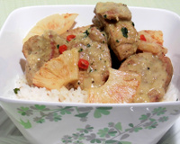 J'avais une petite envie de saveurs exotiques, le temps est pluvieux et le seul moyen de faire rentrer le soleil dans la maison c'est en passant par la cuisine, une recette qui ensoleille pas seulement la cuisine mais qui réchauffe aussi les coeurs, donc aujourd'hui je vous présente le filet mignon de porc au curry et lait de coco auquel j'ai rajouté quelques petites tranches d'ananas que j'avais fait dorer, je peux vous assurer que c'est un pur régal !