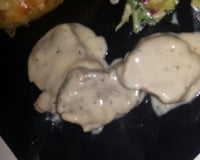 Pendant ce temps couper le maroilles en dés et le mélanger avec la crème, en fin de cuisson de la viande rajouter la préparation crème/maroilles et laisser fondre le fromage et remuer.