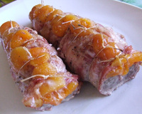 Recette d'un filet de porc farci avec de la Coppa et des abricots secs puis entouré par de la poitrine fumée. Cuisson au four.