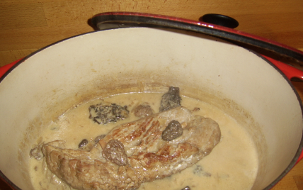 Rincer les morilles, ajouter à la préparation puis laisser mijoter doucement encore 5 minutes, ajouter le crème fraîche en dernier. Donner un dernier bouillon, c'est prêt.