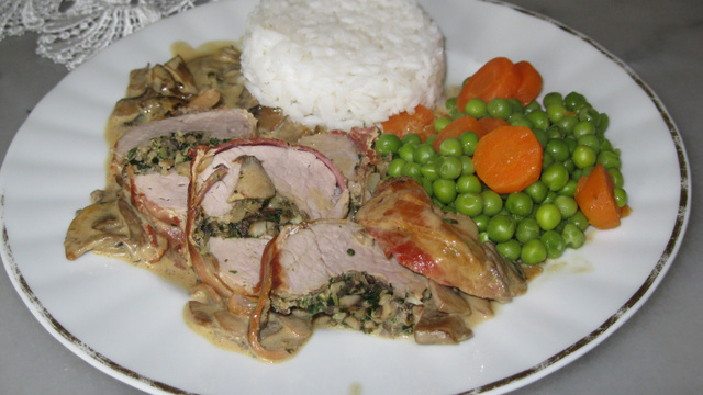 Napper chaque filet mignon avec cette préparation,les enrouler avec les tranches de poitrine fumée paysan, les poser dans une poèle, les dorer en les retourant régulièrement pendant 15 minutes.