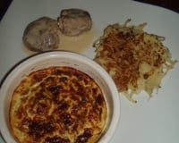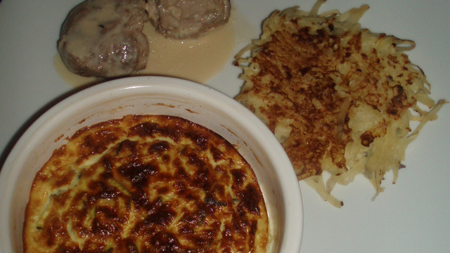 Râper les pommes de terre et l'oignon, mélanger et ajouter un œuf mélanger. Cuire rapidement en forme arrondie et réserver au chaud. - 4