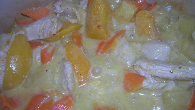 Laisser cuire pendant 30 minutes en y ajoutant une pincée de cumin et de curry. Poivrer si désiré.