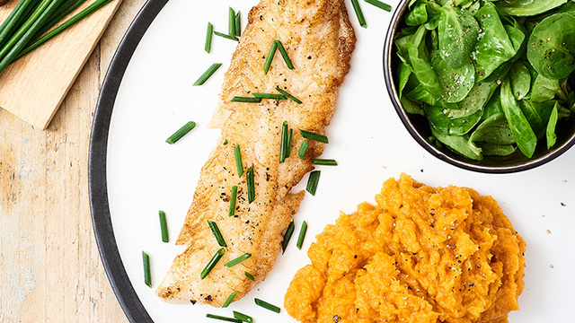 Ajouter 1 noisette de beurre dans la purée de patates douces + ciboulette.