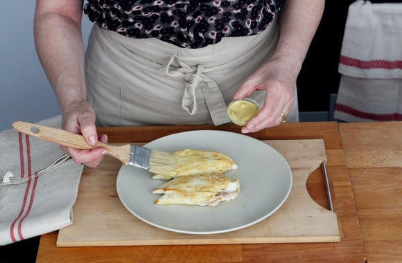 2Badigeonnez-les de moutarde sur les deux faces en vous aidant d'un pinceau.