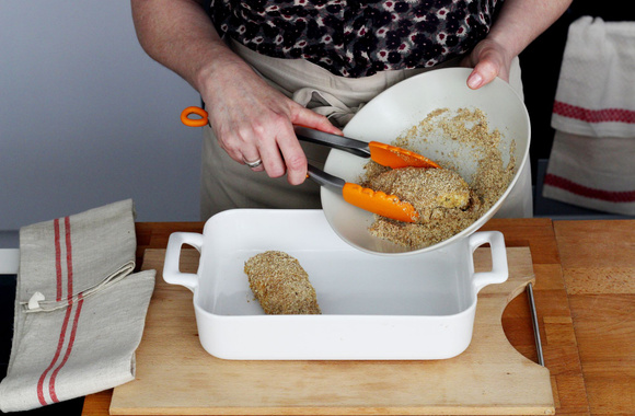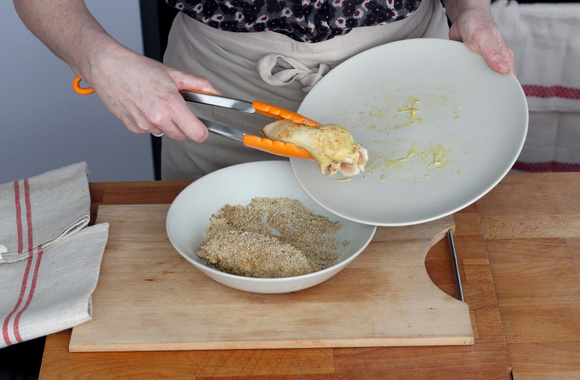 4Passez les filets de poulet dans ce mélange.