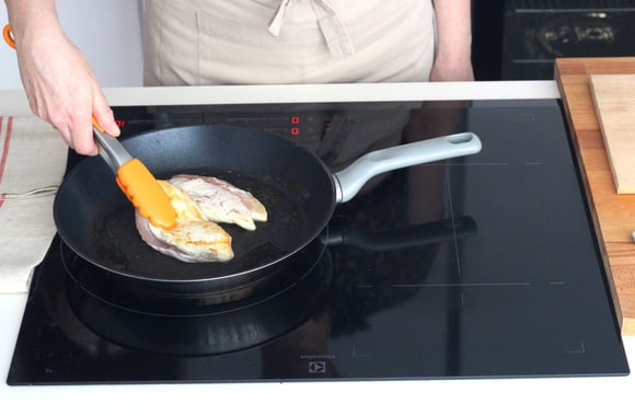 1Faites chauffer l'huile d'olive dans une poêle sur feu vif. Ajoutez les filet de poulet faites-les dorer 1 minute de chaque coté.