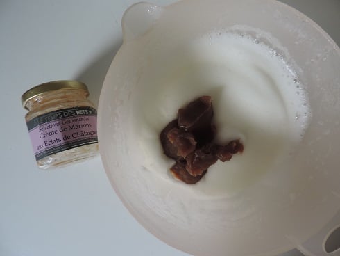 1Faire fondre le beurre jusqu'à ce qu'il prenne la couleur noisette. Laisser tiédir. Dans un saladier, battre les blancs d'oeufs en neige et ajouter la crème de marron.