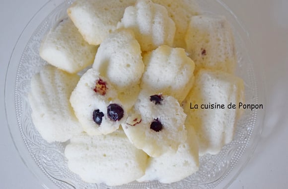 1Dans un saladier, mélanger la farine de riz, le sucre glace et la noix de coco râpée. Ajouter les blancs d'oeufs légèrement montés et mélanger à l'aide d'une maryse. Ajouter l'huile de coco et mélanger toujours délicatement à l'aide de la maryse. Disposer la pâte dans les moules à madeleine. Répartir 4 cassis dans chaque madeleine. Enfourner dans un four préchauffé à 180° pendant 10 à 15min, le temps que les madeleines soient cuites mais pas colorées. Laisser refroidir sur une grille.