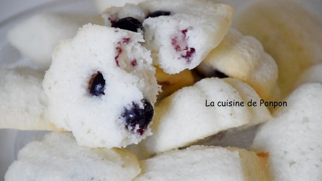 2Disposer la pâte dans les moules à madeleine. Répartir 4 cassis dans chaque madeleine.