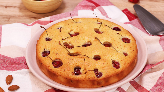 Ajoutez les cerises lavées mais non équeutées puis enfournez.