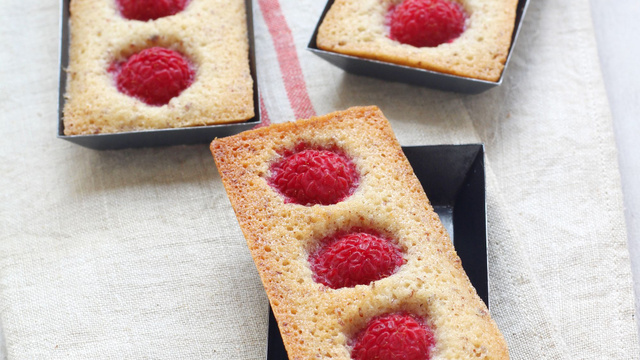 Les framboises apportent un coté acidulé très chouette à ces financiers.