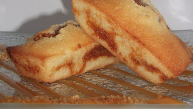 Dans des moules à financiers , mettre une couche d'appareil à financiers puis une couche de praliné et enfin une couche d'appareil à financiers.