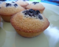 Transvaser la pâte dans les moules à financiers ou à muffins et y ajouter quelques myrtilles au dessus de chaque part, elles éclateront à la cuisson.