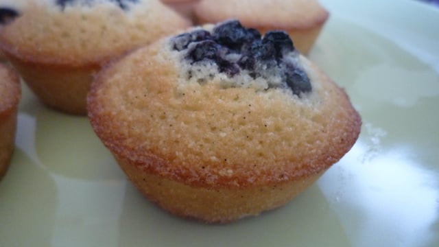 Financiers aux amandes et myrtilles. Une recette facile et rapide avec peu de beurre.