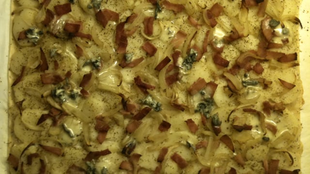 Pseudo-Flammekueche avec pommes de terres et fromages!