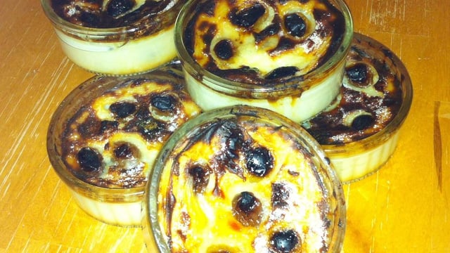 Lorsque les flans sont cuits, vous pouvez les saupoudrer de sucre et les passer quelques instants sous le grill .