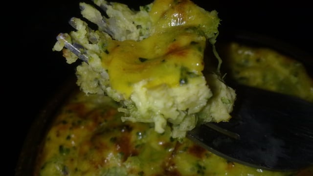 Mettre la préparation dans un plat à gratin beurré (ou 4 plats individuelles), verser l'appareil oeufs et lait sur les brocolis. Mettre le fromage râpé dessus.