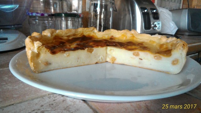 Versez la crème refroidie sur la pâte, lissez et placez au four 20 minutes. Puis augmentez la température du four à 240 degrés (th. 8) et laissez cuire encore 10 minutes. Si la surface ne prend pas assez de couleur, passez le flan sous le grill quelques secondes.