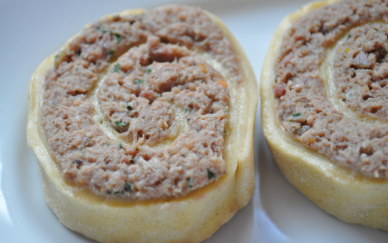 C'est une pâte à nouille roulée garnie de viande de bœuf puis découpée en tranches qui sont ensuite cuites dans un bouillon.