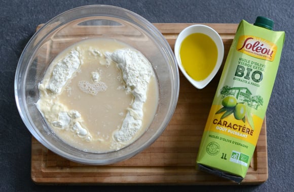 1Dans un bol, faites dissoudre la levure dans l’eau tiède.