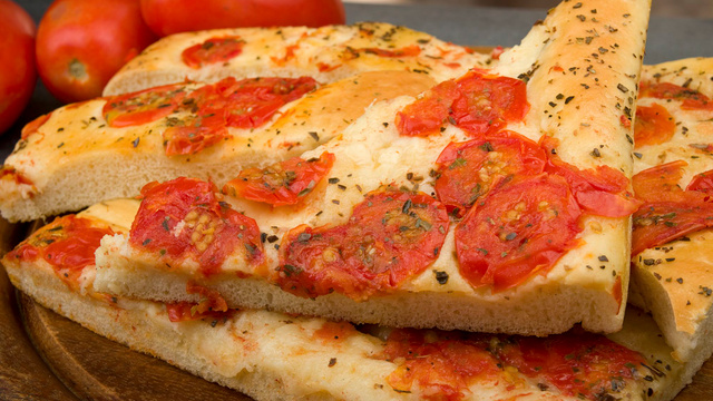 La focaccia est une cousine de la pizza italienne. La différence essentielle tient à la composition de la pâte. La focaccia est aussi un peu plus grasse mais elle est si bonne !