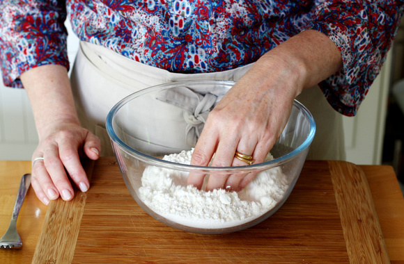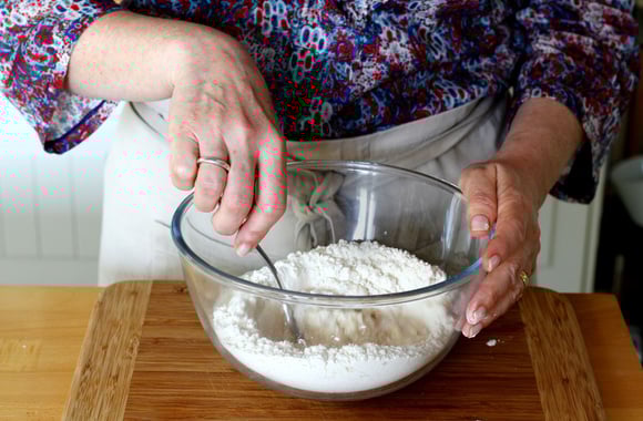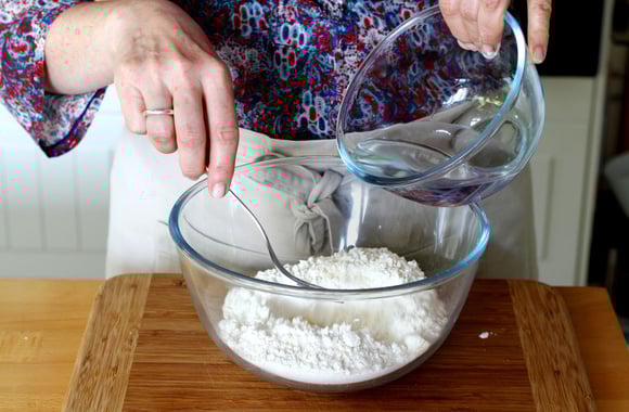 3Ajoutez l'eau petit à petit tout en commençant à mélanger avec une fourchette.