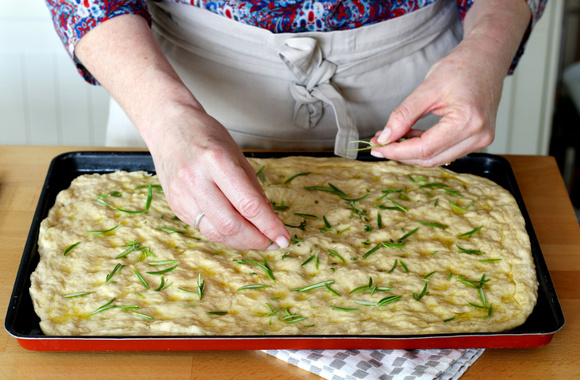 9Parsemez de romarin et de thym frais et de fleur de sel puis laissez lever 30 minutes.