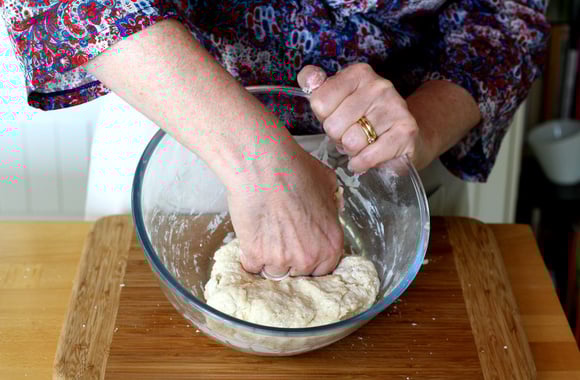 5Pétrissez pendant quelques minutes à la main, jusqu'à ce que la pâte soit lisse. Couvrez puis faites lever dans un endroit chaud, jusqu'à ce que la pâte double de volume.