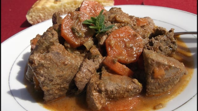 Un plat typique algérien, de délicieux morceaux de foie mijotés en sauce...