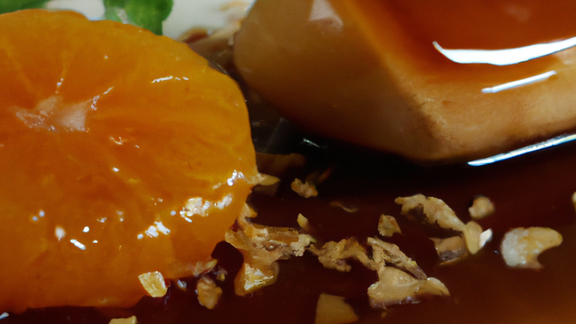 Escalope de foie gras chaud en mille-feuille croustillant accompagné d'un caramel d'orange