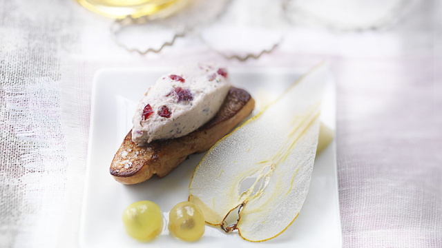 Dressez dans une assiette le foie gras, déposez une quenelle de Tartare®. Ajoutez les fruits et une cuillère à café de réduction au Monbazillac.