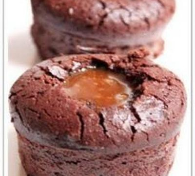 Un délicieux fondant au chocolat avec un cœur coulant de caramel au beurre salé. C'est trop bon.