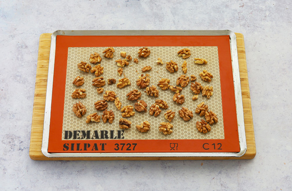 Cassez la Noix du Périgord AOP, prélever les cerneaux, disposez-les sur une plaque perforé ou sur la plaque du four, avec du papier sulfurisé en dessous. Enfournez et faites torréfier la Noix du Périgord AOP 7 à 10 minutes, selon la puissance de votre four. Quand la Noix du Périgord AOP dégagent leur parfum elles sont torréfiées. Laissez-les refroidir.