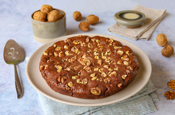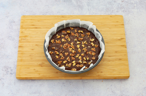 Répartissez la Noix du Périgord AOP concassées restantes sur la surface du gâteau, puis enfournez pour 20 minutes.