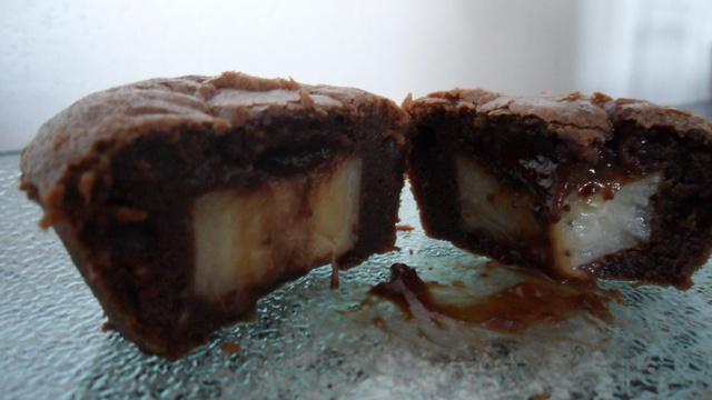 Des fondants au chocolat avec un coeur fruité à la banane