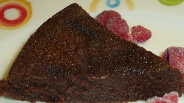Verser dans un moule à manqué préalablement beurré. Faire cuire 22 minutes. A la sortie du four, le milieu du gâteau doit être tremblotant. Laisser refroidir et démouler. Laisser reposer au moins 12 heures et déguster!