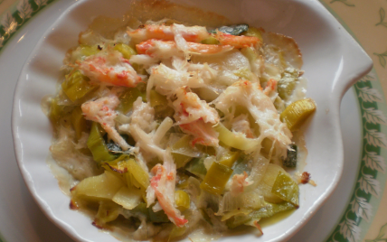 Chair de crabe des neiges aux poireaux