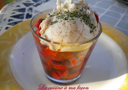 Disposer l'oeuf sur la fondue de poivron et déguster.