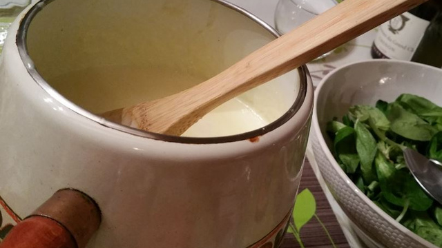 Il ne vous reste plus qu’à ajouter le calvados et votre fondue est prête à être dégustée.