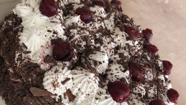 Montage : Verser le jus des cerises dans un bol et laisser les cerises s'égoutter. Lorsque le gâteau est froid, le couper en 2 puis mouiller les 2 parties intérieures du biscuit avec le jus des cerises. Poser la partie inférieure du gâteau sur un plat de service puis étaler une petite partie de la chantilly, disposer les cerises puis remettre un peu de chantilly. Poser dessus la partie supérieure du gâteau et étaler le reste de chantilly sur les côtés et la surface du gâteau. Puis décorer votre forêt noire avec des copeaux de chocolat, de la chantilly, des cerises...