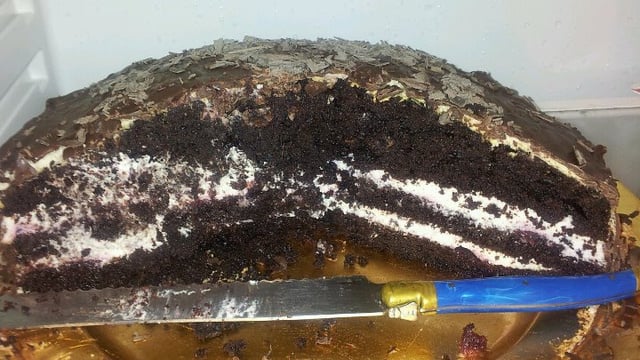 Le gâteau au chocolat peut être remplacé par une génoise au chocolat pour plus de légèreté, et le nappage au chocolat peu être remplacé par le pré-fait trouver en commerce.